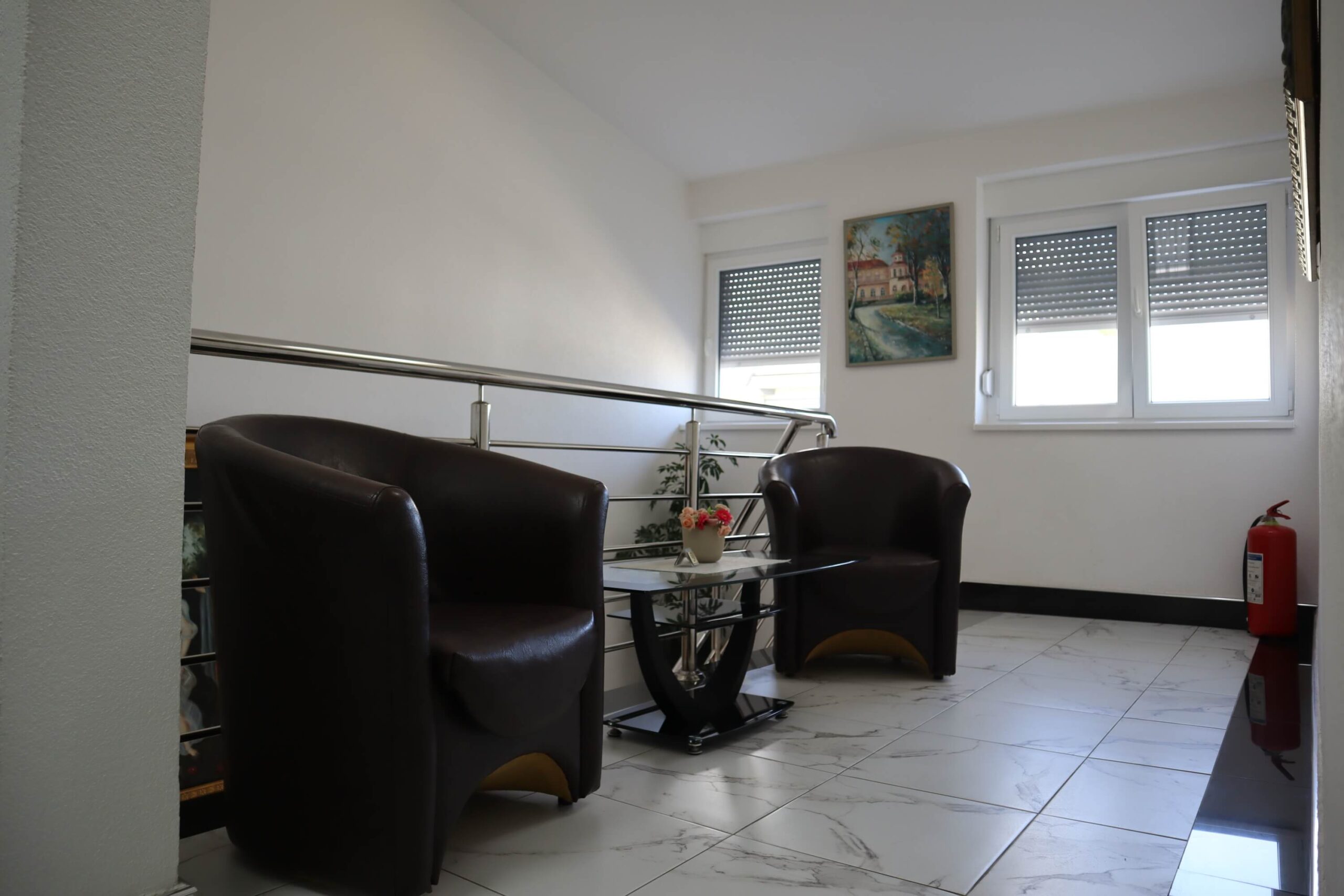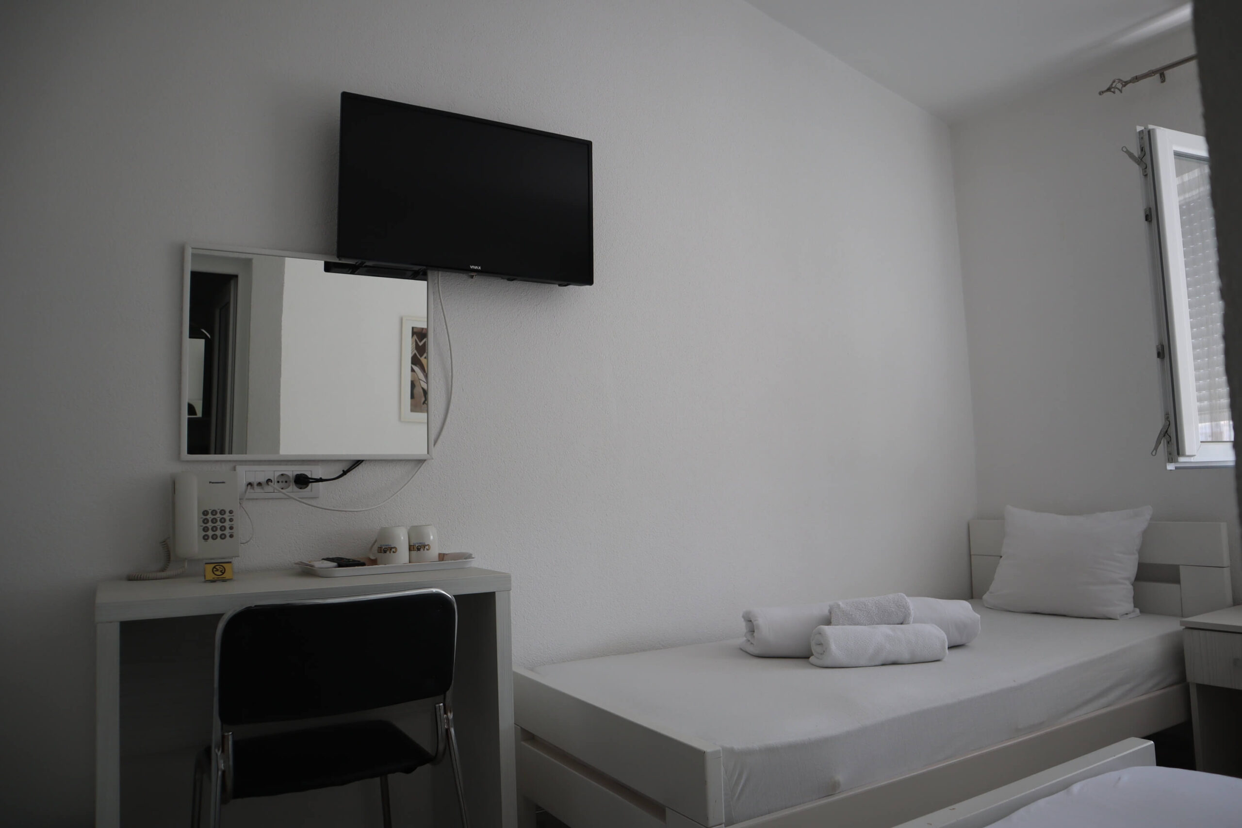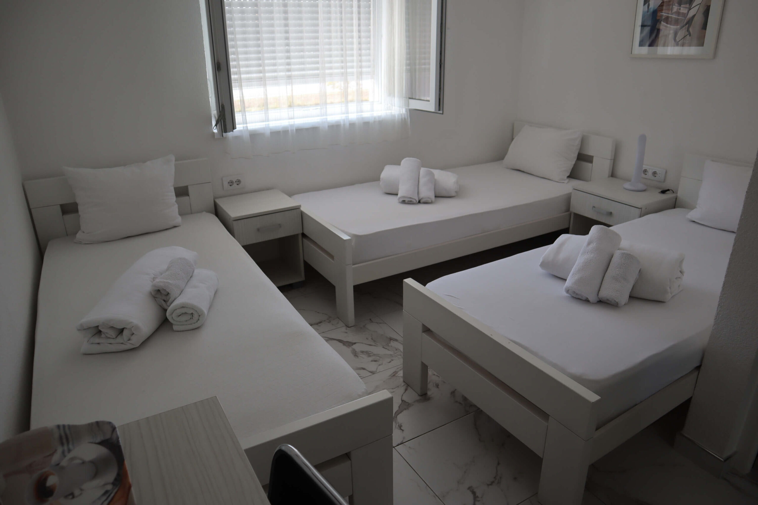 Na raspolaganju imamo trokrevetne sobe sa 3 kreveta za 1 osobu. Takodje imamo dvokrevetne sobe sa bračnim krevetom i 2 zasebna kreveta sa pogledom na grad.